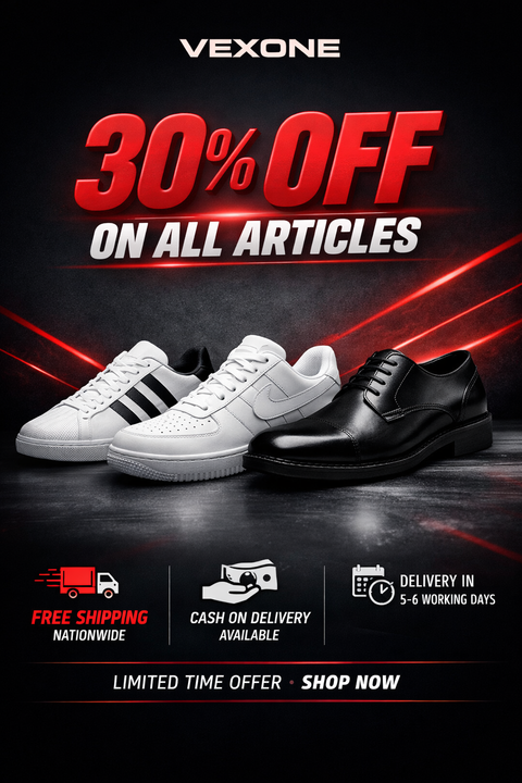 For a limited time, enjoy 30% OFF on all articles, including street essentials, everyday classics, and formal footwear.
